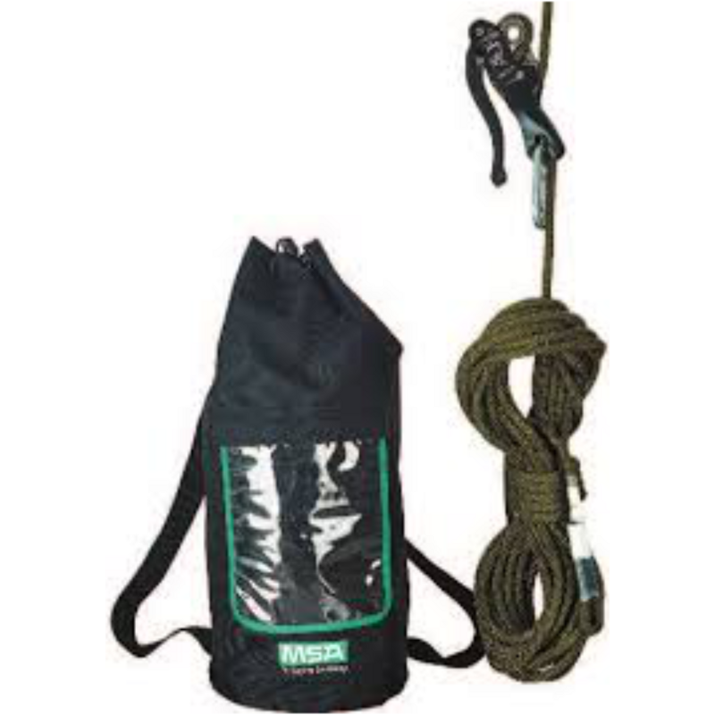Il sistema è costituito da 20 m di fune in poliammide con sezione 11 mm con occhielli cuciti, un dispositivo Anthron DSD Plus e una sacca per il trasporto.
