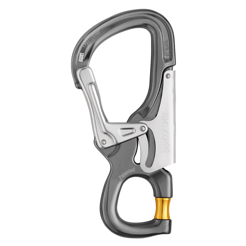 Il connettore EASHOOK OPEN è progettato per essere utilizzato alle estremità di un cordino doppio o di posizionamento sul lavoro. Il punto di collegamento apribile permette d’installare direttamente il connettore sui cordini. In caso di danneggiamento del cordino, può essere riutilizzato. L’eccellente impugnatura e il sistema di bloccaggio automatico facilitano le manovre nel passaggio dei frazionamenti.
