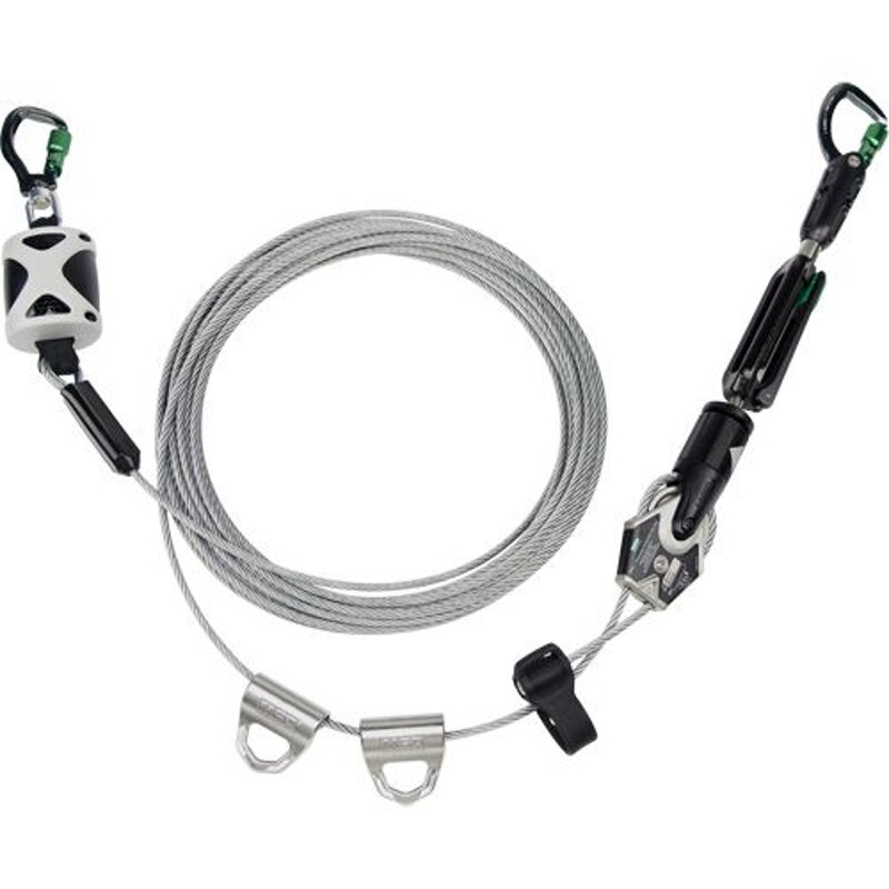 Linea vita temporanea orizzontale in cavo MSA con installazione completamente priva di utensili specifici del cavo THLL di MSA che aiuta a risparmiare tempo e ad aumentare l'efficienza nell'installazione delle linee di vita in cantiere.