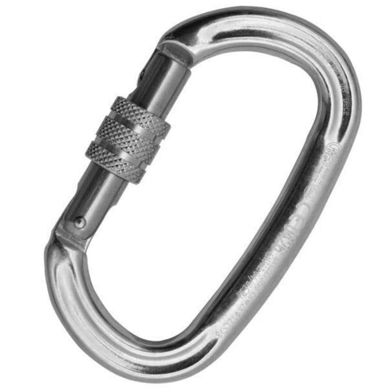 Moschettone ovale in alluminio con grande apertura della leva. L'ampia forma simmetrica, maggiore rispetto a quella di un ovale classico, permette un ancora miglior posizionamento sui dispositivi mobili e il loro corretto funzionamento anche se non perfettamente in asse con il connettore.