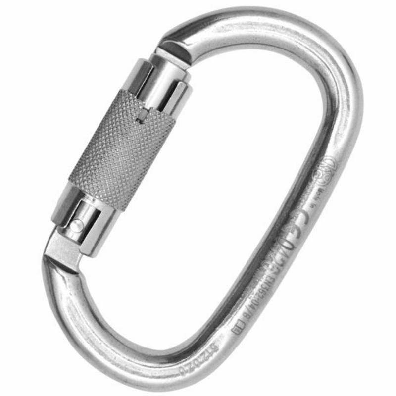 Connettore ovale in acciaio inossidabile AISI 316 ad ampia apertura, con ghiera Auto Block a 3 movimenti. Carico massimo di 27 KN. Ideale per impieghi gravosi e per il collegamento ad ancoraggi strutturali, linee vita, ecc...